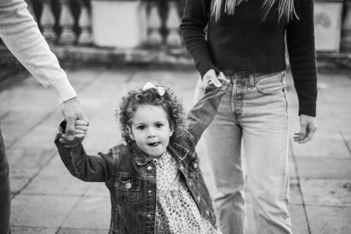 Olivka took a nap in the car on the way to the photoshoot. In the first shots, you can see that we had to wait a little while for her to wake up. And her parents were clearly a bit nervous about how the whole session would go. Luckily, it didn’t faze me at all, because this is completely normal during a family photoshoot. We just gave Olivka some time to settle in. Meanwhile, I focused on photographing details, but mostly I was reassuring Eva and Alex not to worry at all—it’s totally normal when photographing kids. Everything would turn out just fine in the end.
